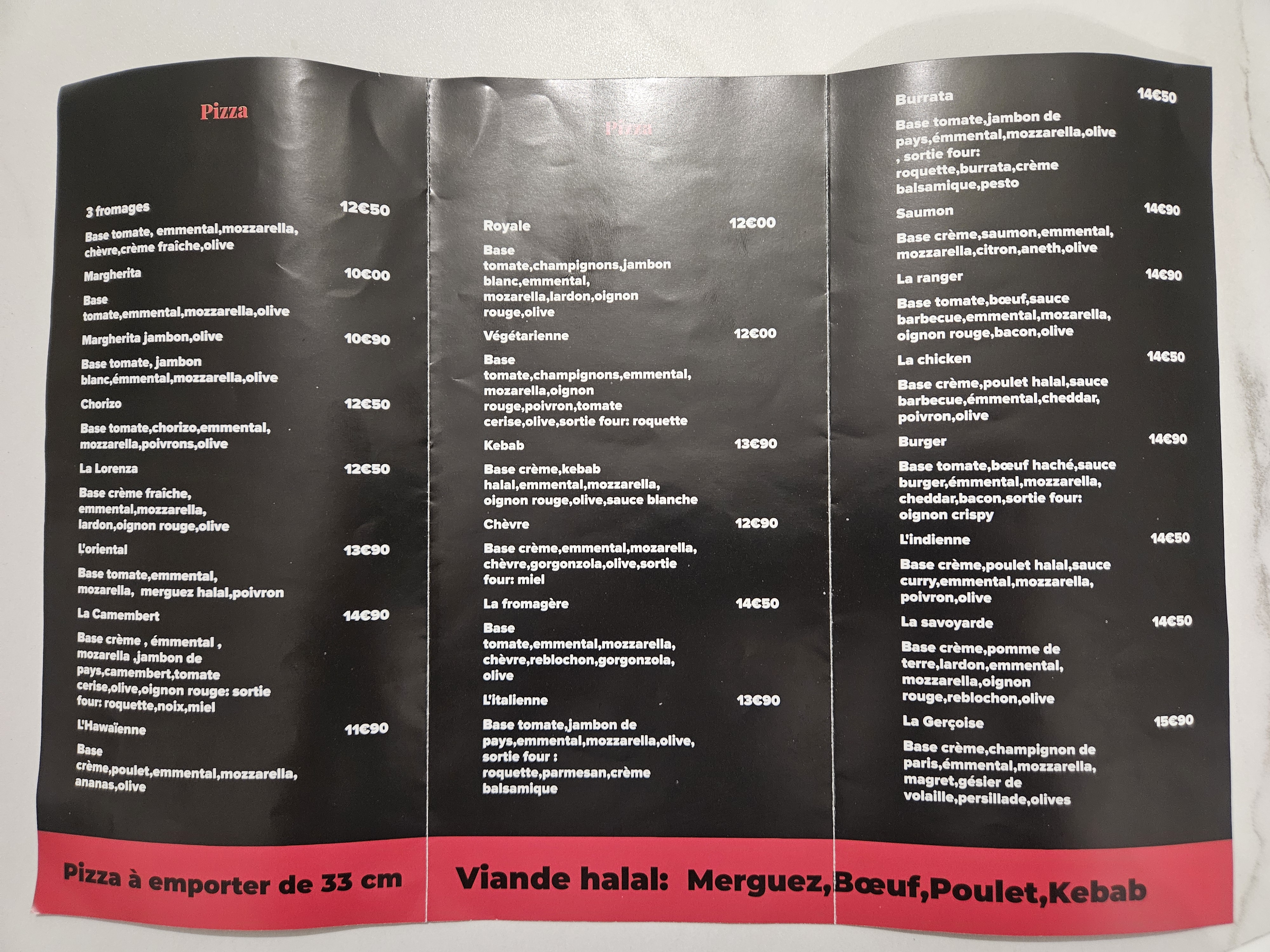 Elle est garnie d’une base crème, emmental, mozzarella, jambon de pays, pommes de terre, bacon, oignon rouge, fromage à raclette au morbier et olives noires. un vrai festival gourmand qui réchauffe le cœur en ce début d’année !